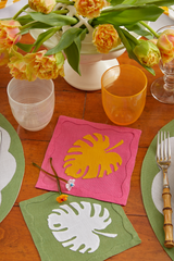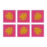 Monstera Leaf Cocktail Napkins, Pink & Marigold, Set of 6