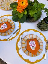 The Muertos napkins are intricately crafted in appliqué and hand embroidery for your most festive occasions. Pair with our matching limited edition Matisse tablecloth or Matisse placemats.