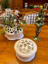 Our new Matisse flower brick was handcrafted with cutouts inspired by our signature Matisse linens. The interior is crafted with hand-altered ridges to keep your florals styled beautifully.