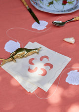 Our beloved cocktail hour bite is back! Crafted on an ivory linen base with hand-stitched appliqué, our Shrimp Cocktail Napkins are the perfect gift for the host with the most.