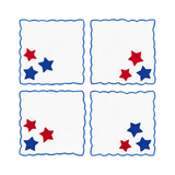 Our Stars are back in a new colorway for summer! With hand embroidered scalloped borders and stars carefully crafted in appliqué, this set of four makes a lively addition to your summer gatherings.