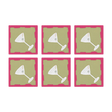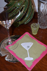 Dirty Martini Cocktail Napkins, Fern & Pink, Set of 6 - Sample Sale