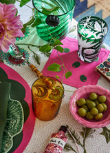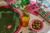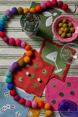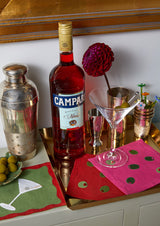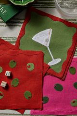 Calling all martini-lovers! We're thrilled to bring back our Olive cocktail napkins to aperitivo hour. This set of four is crafted on a medium weight linen and is adorned with olives in various shades of appliqué and embroidery.