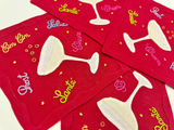 Our Salud cocktail napkins are here in a luscious red for your most festive celebrations. This vintage-inspired set of four features champagne coupes crafted in appliqué with hand-embroidered salutations. Cin Cin!