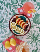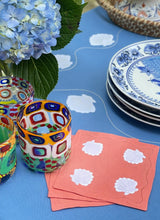 Our Shell Cocktail Napkins are back in coral! This set of six features hand-stitched scallop borders and shells crafted in appliqué.