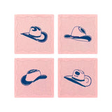 All Hat No Cattle cocktail napkins were made in collaboration with designer Lela Rose for her one of a kind boutique in Jackson Hole, WY. Inspired by the cheeky sayings from Lela's beloved 'Off The Wagon' series, this set of four features cowboy hats handcrafted in appliqué and embroidery on pale pink linen. The perfect gift for rodeo lovers!