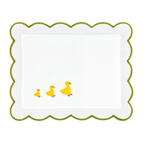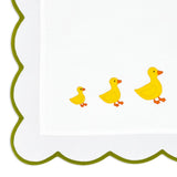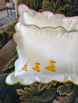 Elizabeth Lake for Littles is here! Shop our new boudoir pillows, crafted on a crisp white cotton with green scalloped borders and Three Little Ducks lovingly handcrafted in appliqué.