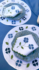 Crafted on a fine Belgian linen, our signature Matisse placemats are hand-stitched with appliqué florals in shades of blue. Pair with our matching Matisse dinner napkins. A classic addition to your table for all seasons.
