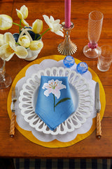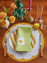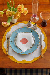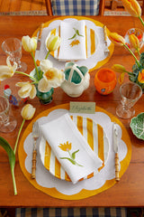 Introducing our new Porto placemat in Marigold, a classic silhouette for all seasons. This set of two is crafted on a fine Belgian linen with contrasting borders hand-stitched in appliqué. Pair with our matching Tulip napkins or mix and match with the Shell, Palm Tree or Lily napkins for summer!