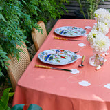 Crafted from a medium weight Italian linen for coastal celebrations, our Shell tablecloth features a central motif hand-stitched in appliqué & embroidery. All tablecloths are finished by hand with our signature scalloped borders. Pair with our Shell napkins in Coral.